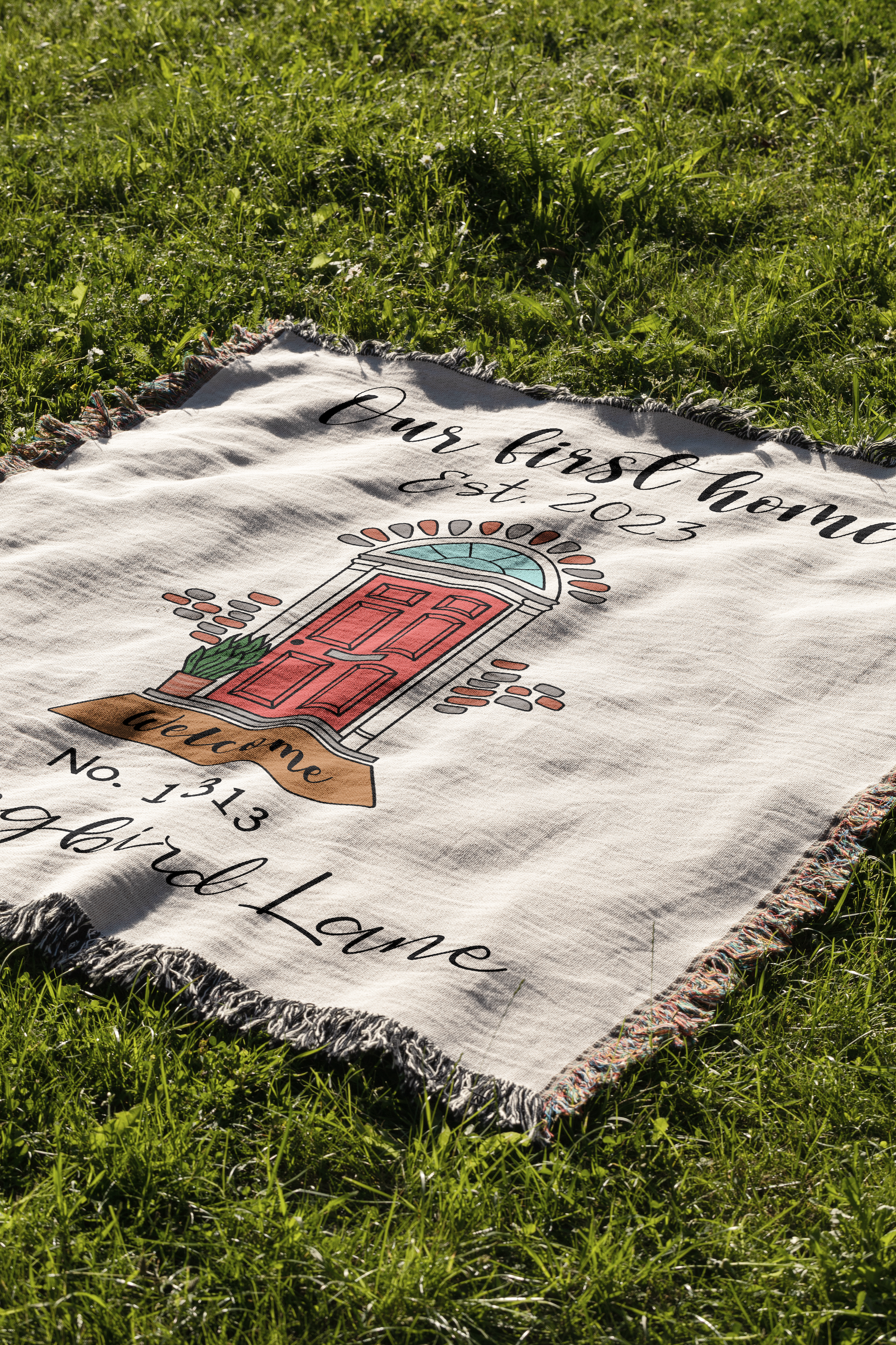 "Our First Home" Personalized Woven Throw Blanket
